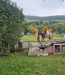 Selbst die jüngsten Familienmitglieder wurden involviert, um zum guten Gelingen der Wanderung beizutragen. Die Rast war für alle Beteiligten erholsam und es konnte Kraft für die zweite Hälfte der Strecke getankt werden. Auch die Vierbeiner konnten den Durst, sofern vorhanden, stillen und sich auf der Wiese ausruhen. Einige hatten anscheinend noch Kraftreserven und begannen zu spielen.