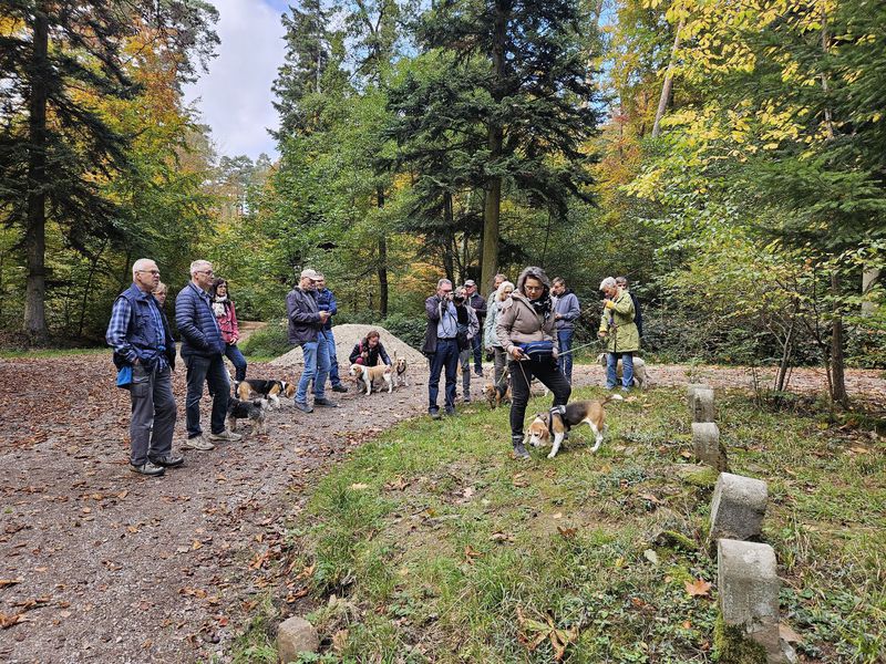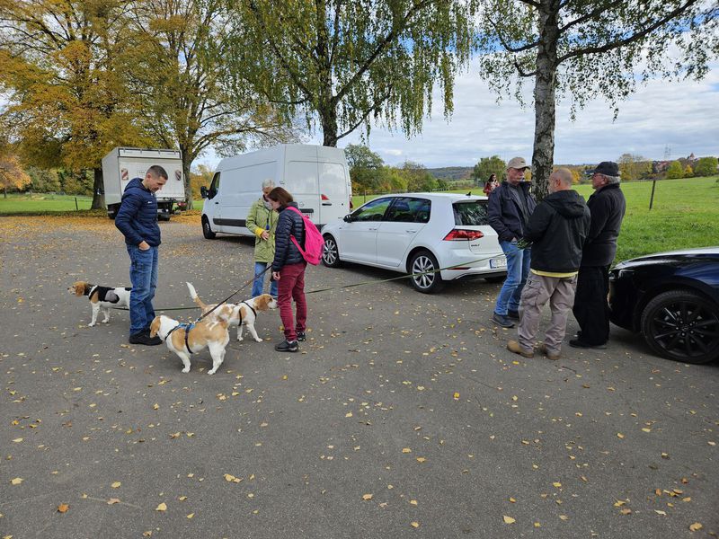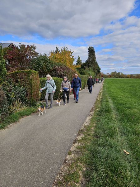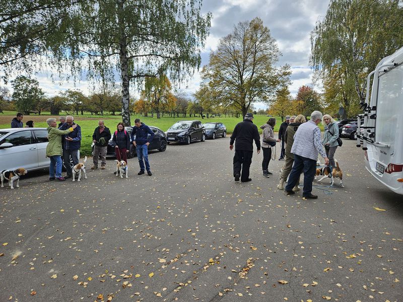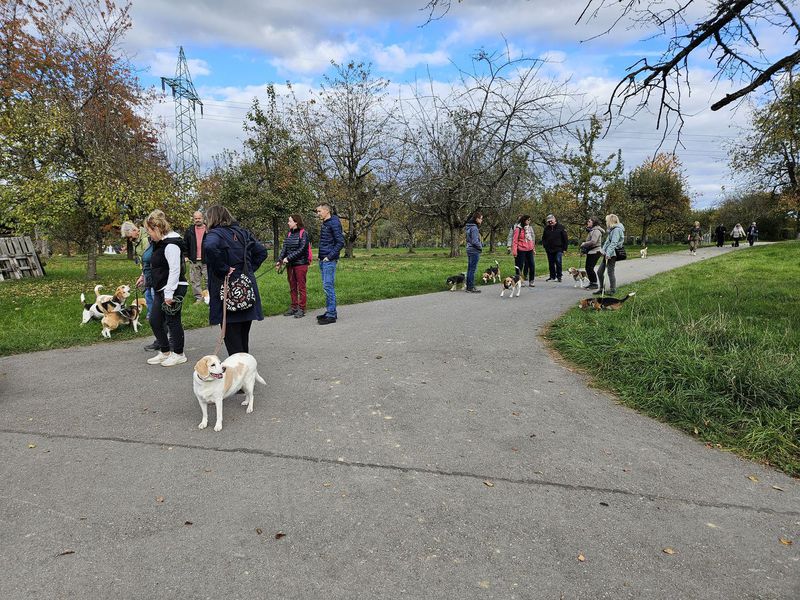Insgesamt folgten 18 Personen mit 9 Beagle und zwei bekannten non Beagle der Einladung. Die Wetteraussichten, kein Regen und die Temperatur von 11-15 Grad, waren optimal für den geplanten Spaziergang.