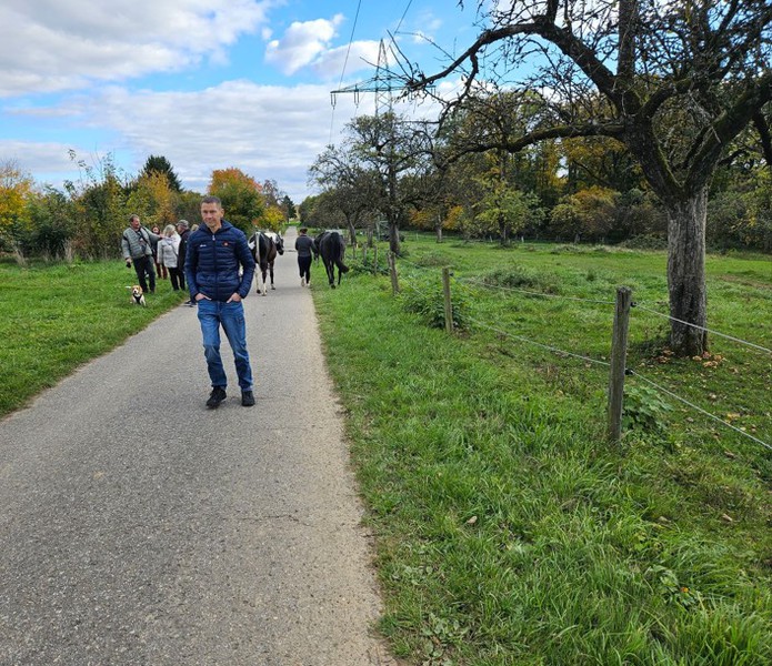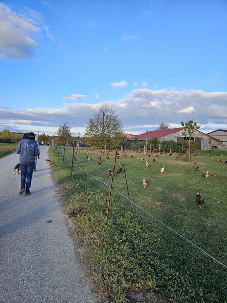 die Strecke an einer großen Freiland Hühnerfarm vorbei. Nach dem Überqueren der Remstalstrasse hatten wir den Weg von ca. 8 km nach rd. 2 Stunden bewältigt und erreichten den Parkplatz, unseren