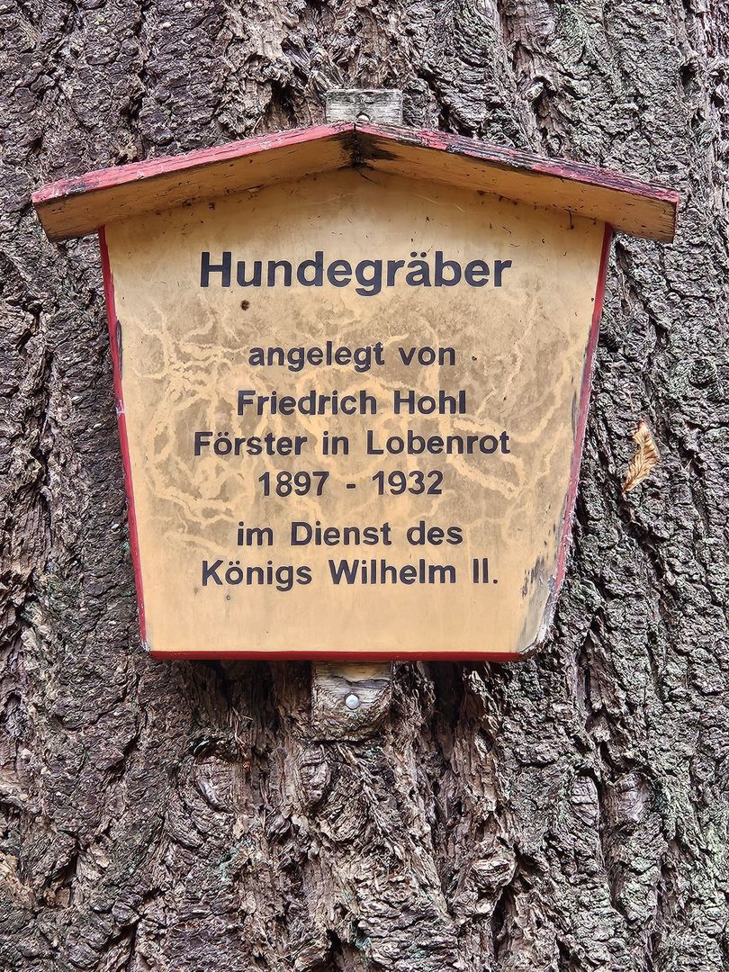 Der beherzte Einsatz seiner Hunde, haben dem Jäger/Förster offensichtlich zwei Mal das Leben gerettet. Aus Dankbarkeit seinen Hunden gegenüber, errichtete er wohl einen der ältesten Jagd-Hundefriedhof in Europa. Angelegt wurde er von Forstwart Friedrich Wilhelm Hohl (1869-1932), der 1896 unter dem württembergischen König Wilhelm II. seinen Dienst im Forstrevier Lobenrot antrat und bis zu seinem Tod dort tätig war.