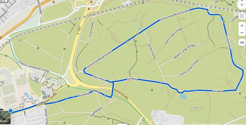 Nach nochmaliger Überquerung einer Hauptstraße, der Panzerstraße, (Zufahrt zur Panzerkaserne, Hauptquartier des United States Marine Corps Forces Europe (MARFOREUR) gelangten wir in den Stadtwald.