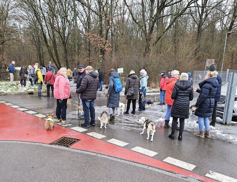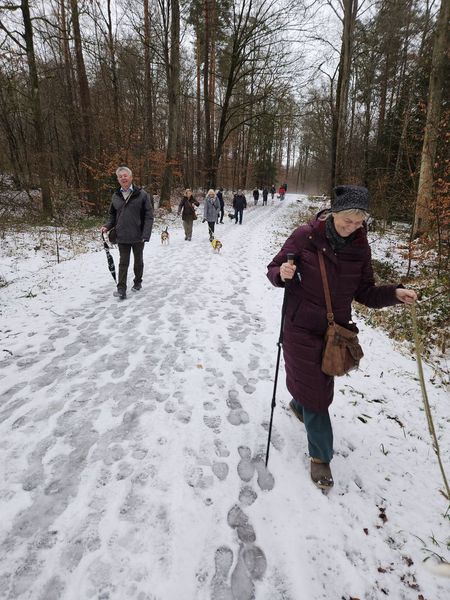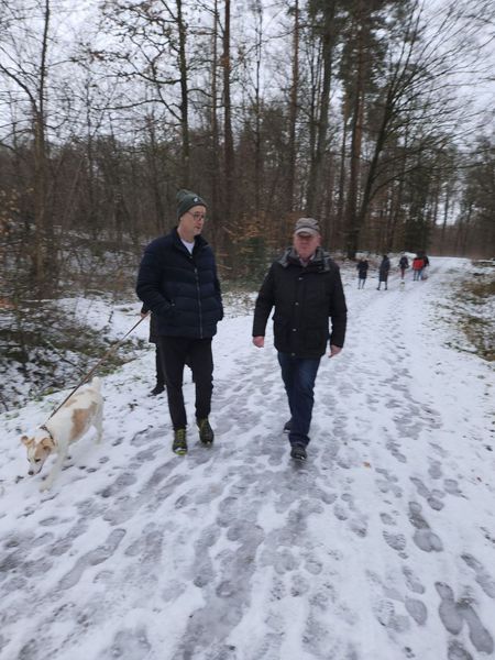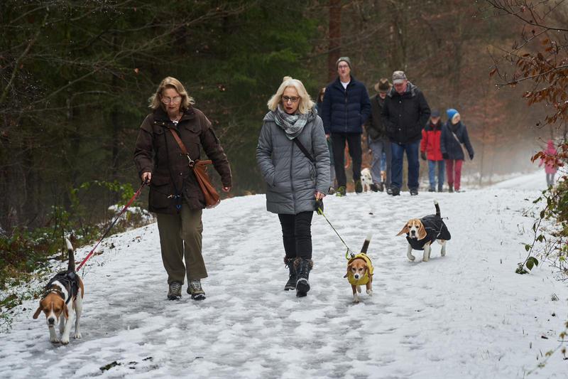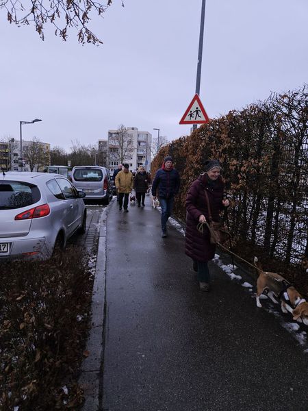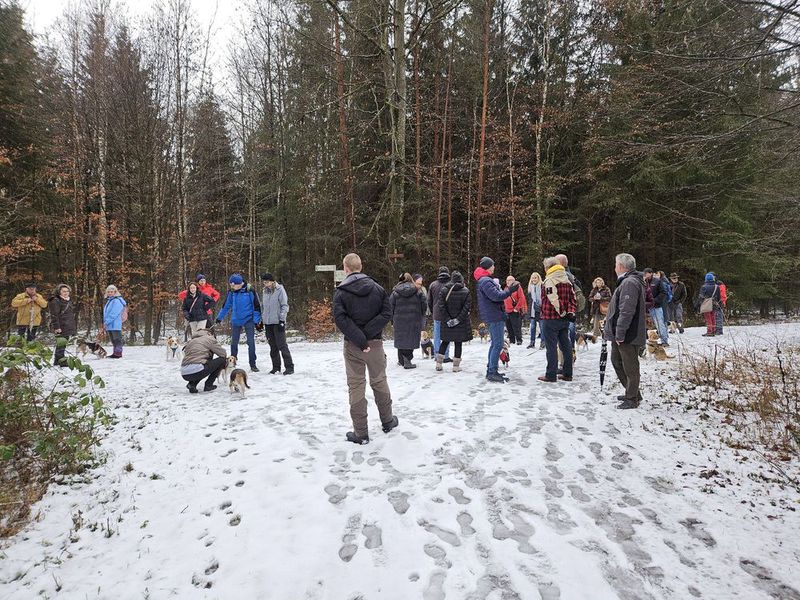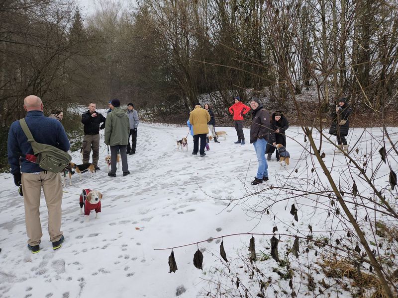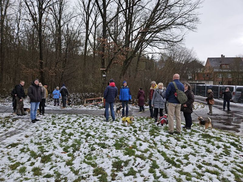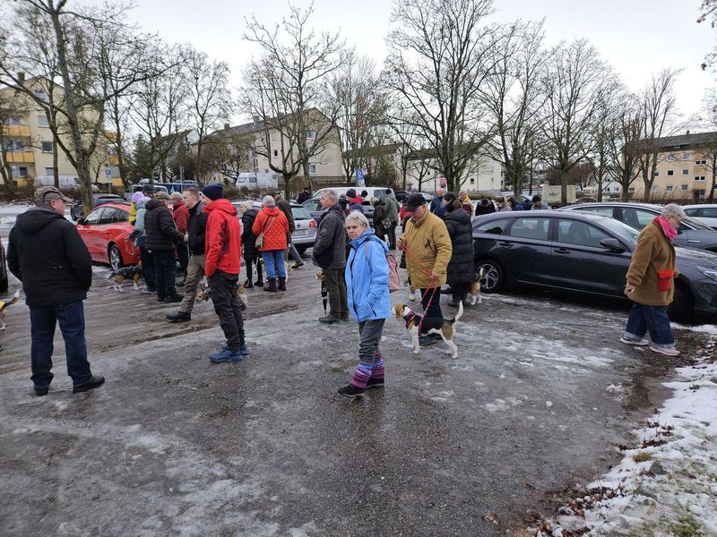 Nachdem die „treuen Beagler“, die sich für den Spaziergang angemeldet hatten, (es erfolgte keine Absage) wohlbehalten auf dem Parkplatz eingetroffen waren, konnten sich alle Zwei- und Vierbeiner erstmals im neuen Jahr begrüßen.
