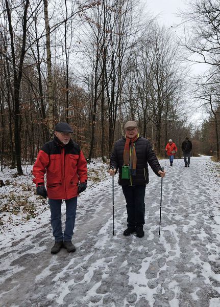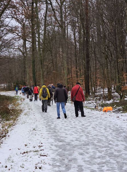 Entspannt spazierten wir durch den relativ gut begehbaren „Winterwald“, der sich durch Reif und der vorangegangenen Schneeschauer winterlich weiss präsentierte, teilweise in Gespräche vertieft und was alle insgeheim gehofft hatten, der angesagte Regen blieb aus. Nach den frostigen Graden vom Morgen, fühlte man nun, dass sich die Temperaturen nach oben in Richtung über 0 Grad bewegten und die gute Winterkleidung nun doch etwas warm wurde.