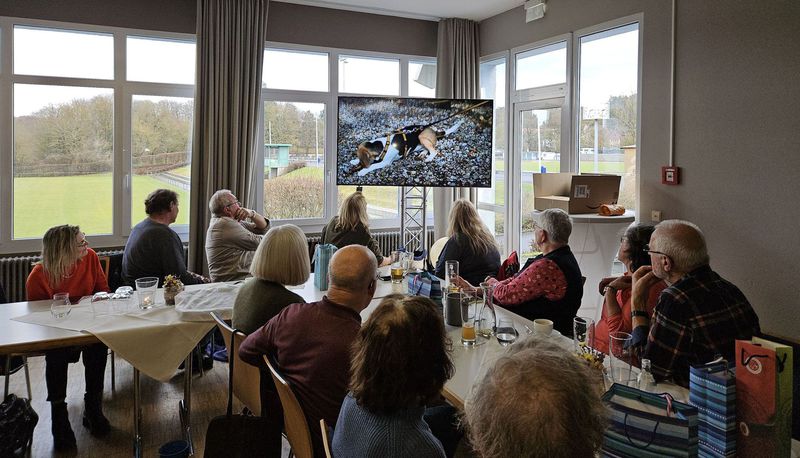 Unser Mitglied, Hans Krause, hatte sich für den heutigen Anlass die Mühe gemacht, eine Dokumentation in Form von Bildern und Kurzfilmen zusammenzustellen und diese zu zeigen. Hier konnten Dokumentationen von verschiedenen Beagle Aktivitäten im Rückblick der vergangenen Jahre/Jahrzehnte angesehen werden. Hierbei kamen einige Erinnerungen hoch, ( auch an die Beagle von damals, die bereits über die Regenbogenbrücke gegangen sind), vor allem bei den damals „jungen Beaglern“, die heute im fortgeschrittenen Alter hier an den Tischen sitzen. Wie schnell doch die Zeit vergeht!