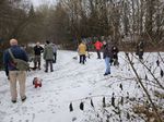Um in den Stadtwald Böblingen, unser Ziel, zu gelangen, führte uns der Weg entlang der Stuttgarter Straße. Nachdem wir diese überquert hatten, erreichten wir ein kleines Waldstück. Hier galt es in Teilen vorsichtig zu sein, da der anfänglich geteerte Weg stellenweise überfroren und glatt war.