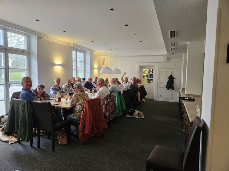 Nach etwa eineinhalb Stunden zügigem Lauf, auch dem Wetter geschuldet, hatten wir die knapp 7 Kilometer mit rd. 100 m Höhenunterschied bewältigt und trafen wieder am Ausgangspunkt ein. Bis zum Restaurant -Am Golfplatz- waren es nur einige Minuten Autofahrt.