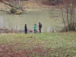 Am Wanderweg entlang kamen wir am Ochsenweiher See vorbei. Da mittlerweile ausreichend Nass von oben kam, hatte keiner der Vierbeiner so richtig Lust auf eine Abkühlung im Wasser, bzw. die Spaziergänger Lust am See etwas zu verweilen. Immer wieder wurden jedoch kleine Stopps eingelegt, sodass die Hintersten der Gruppe wieder aufschließen konnten. Einige wenige hatten sich entschlossen die Abkürzung zu nehmen.