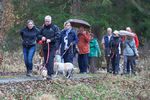 Der Wanderweg war gut begehbar, in großen Teilen im Wald oder am Waldesrand entlang. Dann erfolgte, was wir befürchtet hatten …es fing an zu regnen. Die Zweibeiner holten den Regenschirm, sofern vorhanden heraus, andere stülpten ihre Kapuzen über den Kopf. Der ein oder andere Vierbeiner schüttelte sich kräftig und versuchte wohl damit die ersten Regentropfen loszuwerden, da Regen auch nicht unbedingt zum bevorzugten Wetter des Beagles gehört.